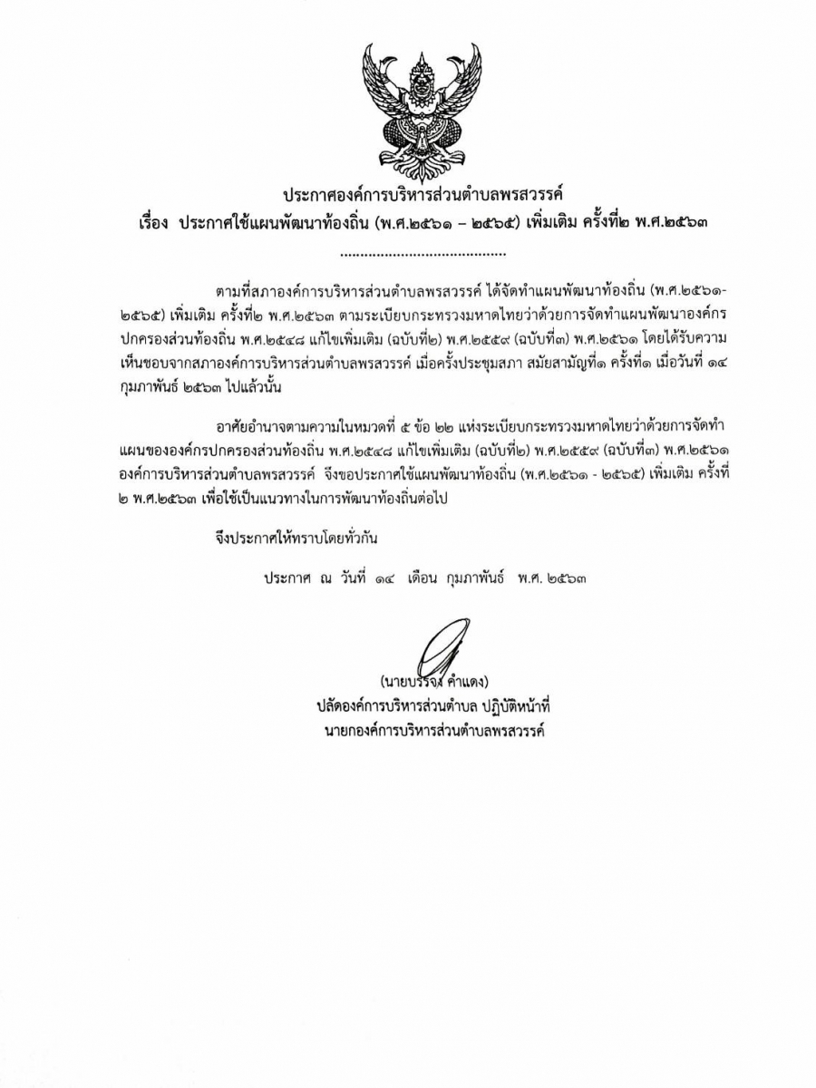 แผนพัฒนาท้องถิ่น พ.ศ.2561-2565 เพิ่มเติม ครั้งที่ 2 พ.ศ.2563