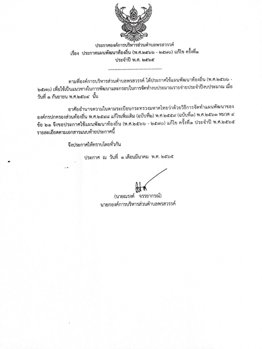 แผนพัฒนาท้องถิ่น (พ.ศ.2566 - 2570) แก้ไข ฉบับที่ 1 ประจำปี 2565