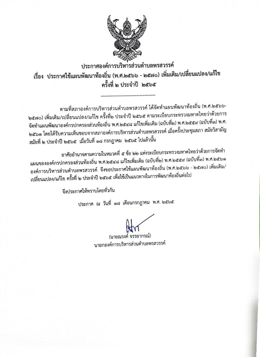 แผนพัฒนาท้องถิ่น (พ.ศ.2566 - 2570) เพิ่มเติม/เปลี่ยนแปลง/แก้ไข ครั้งที่ 2 ประจำปี 2565