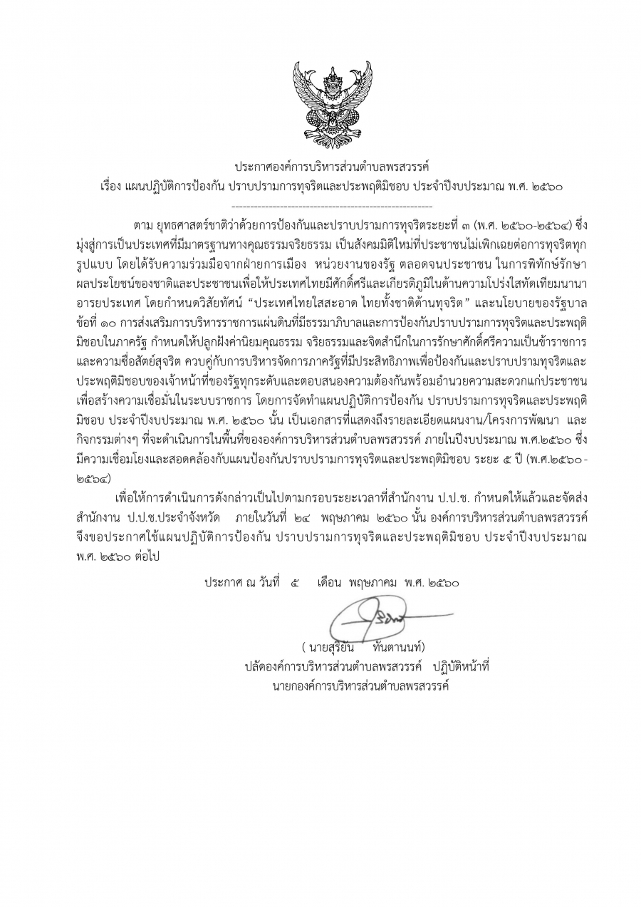วันอังคาร, 09 พฤษภาคม 2560 10:28 แผนปฏิบัติการป้องกันการทุจริต พ.ศ.2560 - 2564 Print Email back to top