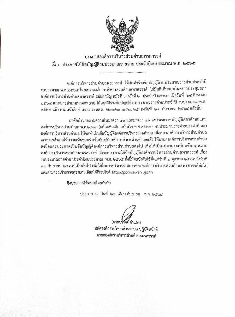 ข้อบัญญัติงบประมาณรายจ่าย ประจำปีงบประมาณ พ.ศ.2565