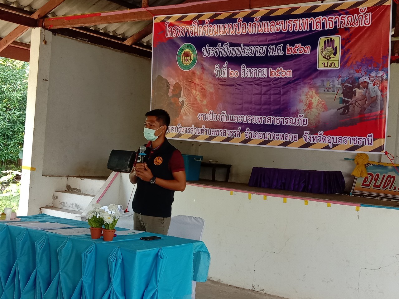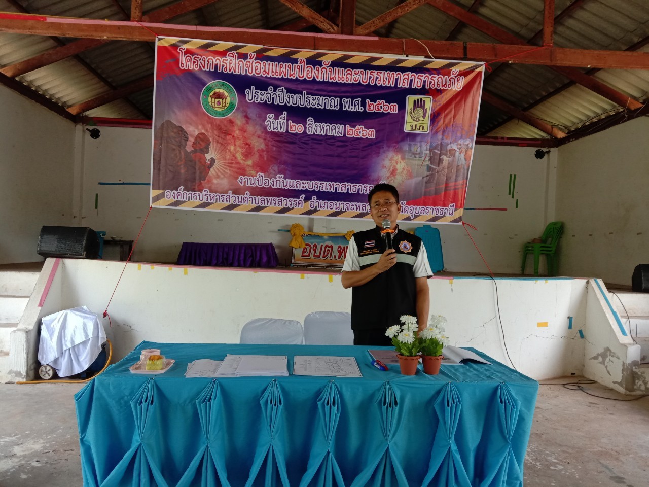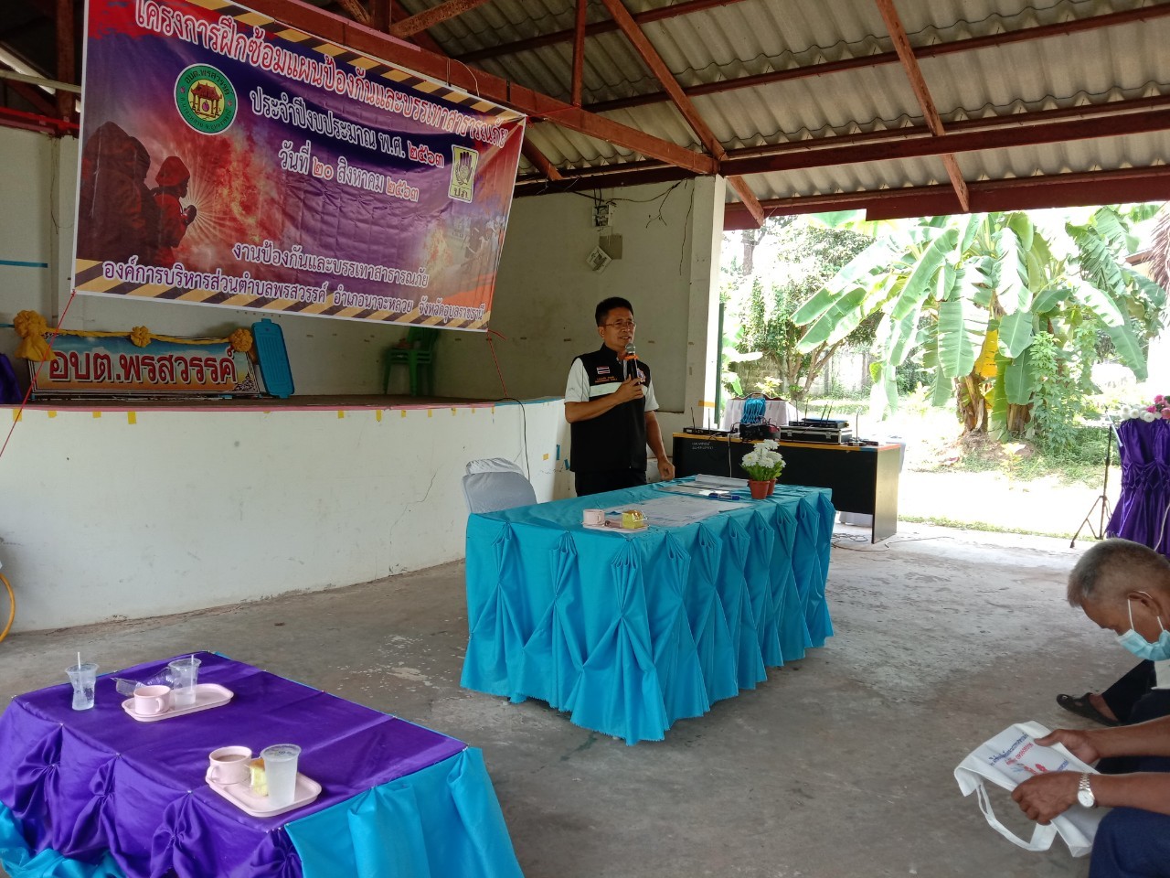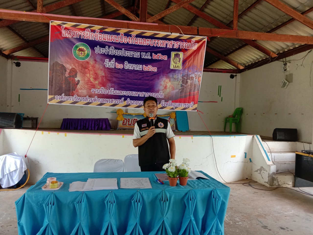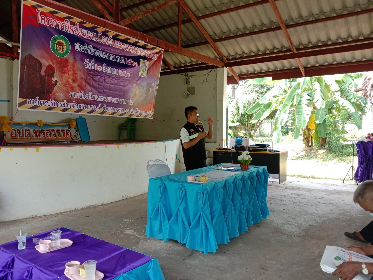 วันที่ 20 สิงหาคม. 2563. งานป้องกันและบรรเทาสาธารณภัย จัดอบรมโครงการฝึกซ้อมแผนป้องกันและบรรเทาสาธารณภัยให้กับประชาชนในพื้นที่เพื่อเป็นการทบทวน. เตรียมความพร้อมและเพิ่มทักษะในการเผชิญเหตุ ณ ห้องประชุมองค์การบริหารส่วนตำบลพรสวรรค์
