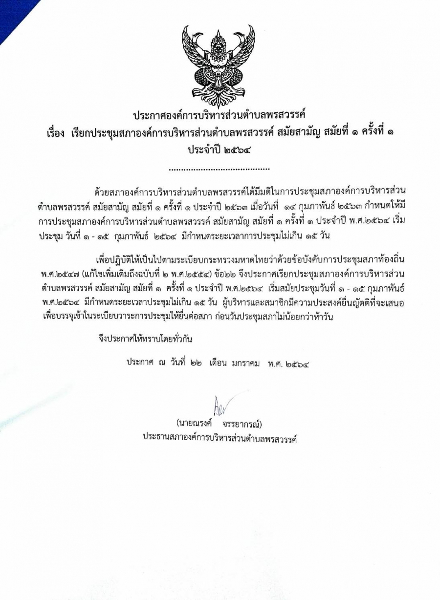 รายงานการประชุมสภาสมัยสามัญที่1 ครั้งที่1 ประจำปี 2564
