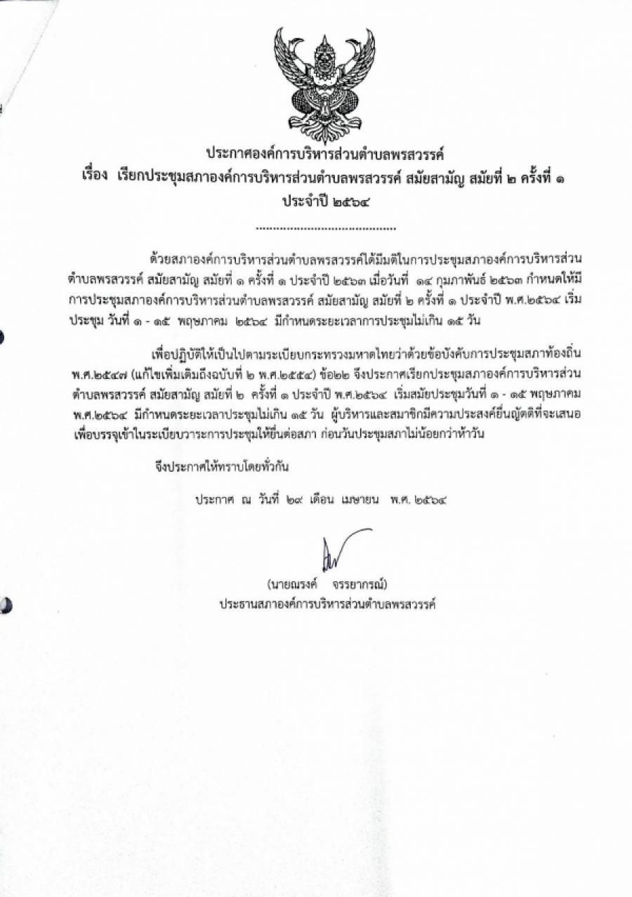 รายงานการประชุมสภาสมัยสามัญที่2 ครั้งที่1 ประจำปี 2564