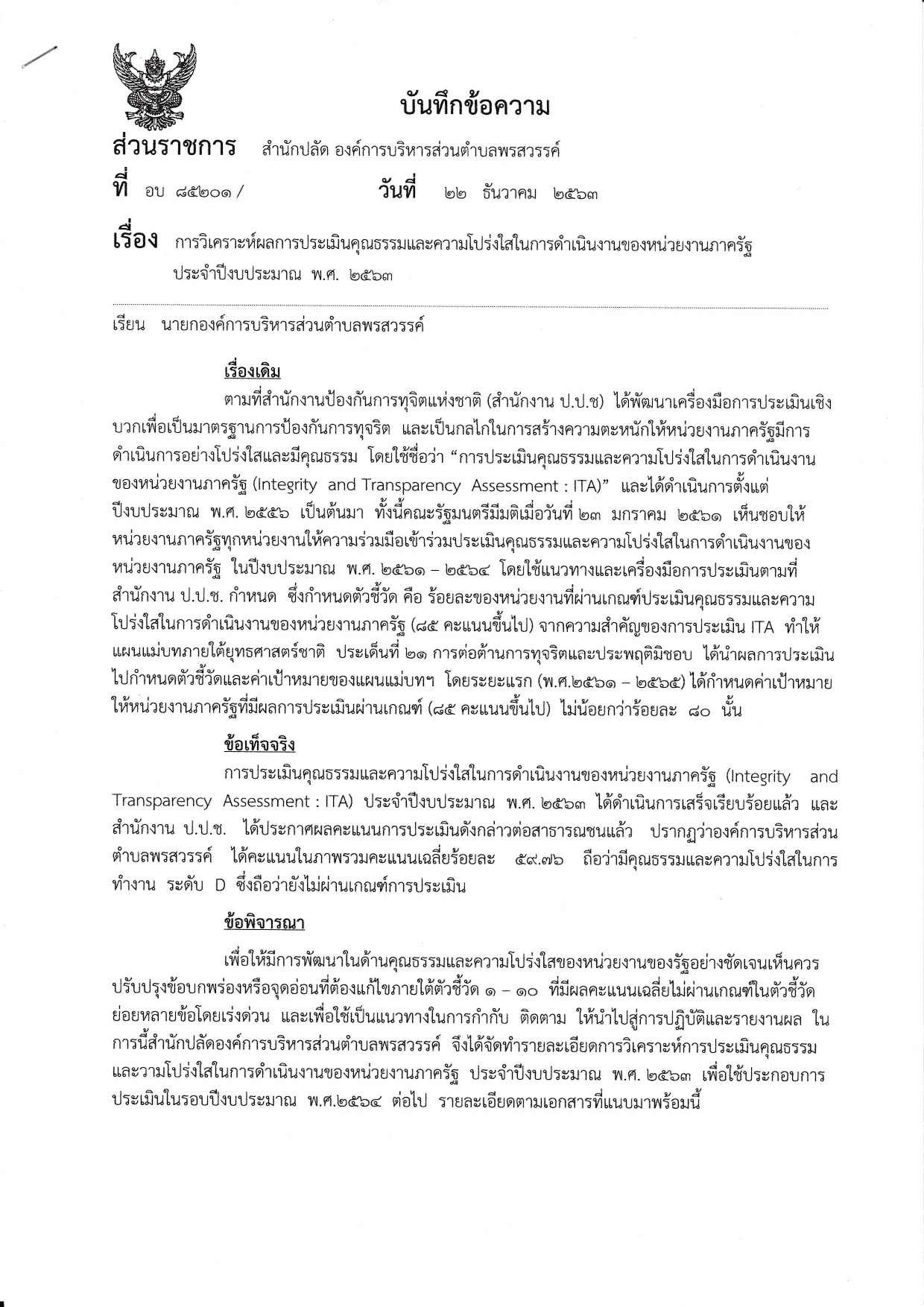 วันจันทร์, 22 มีนาคม 2564 15:54 รายงานผลการวิเคราะห์การประเมินคุณธรรมและความโปร่งใสในการดำเนินงานของหน่วยงานภาครัฐ ประจำปีงบประมาณ 2563 Print Email back to top